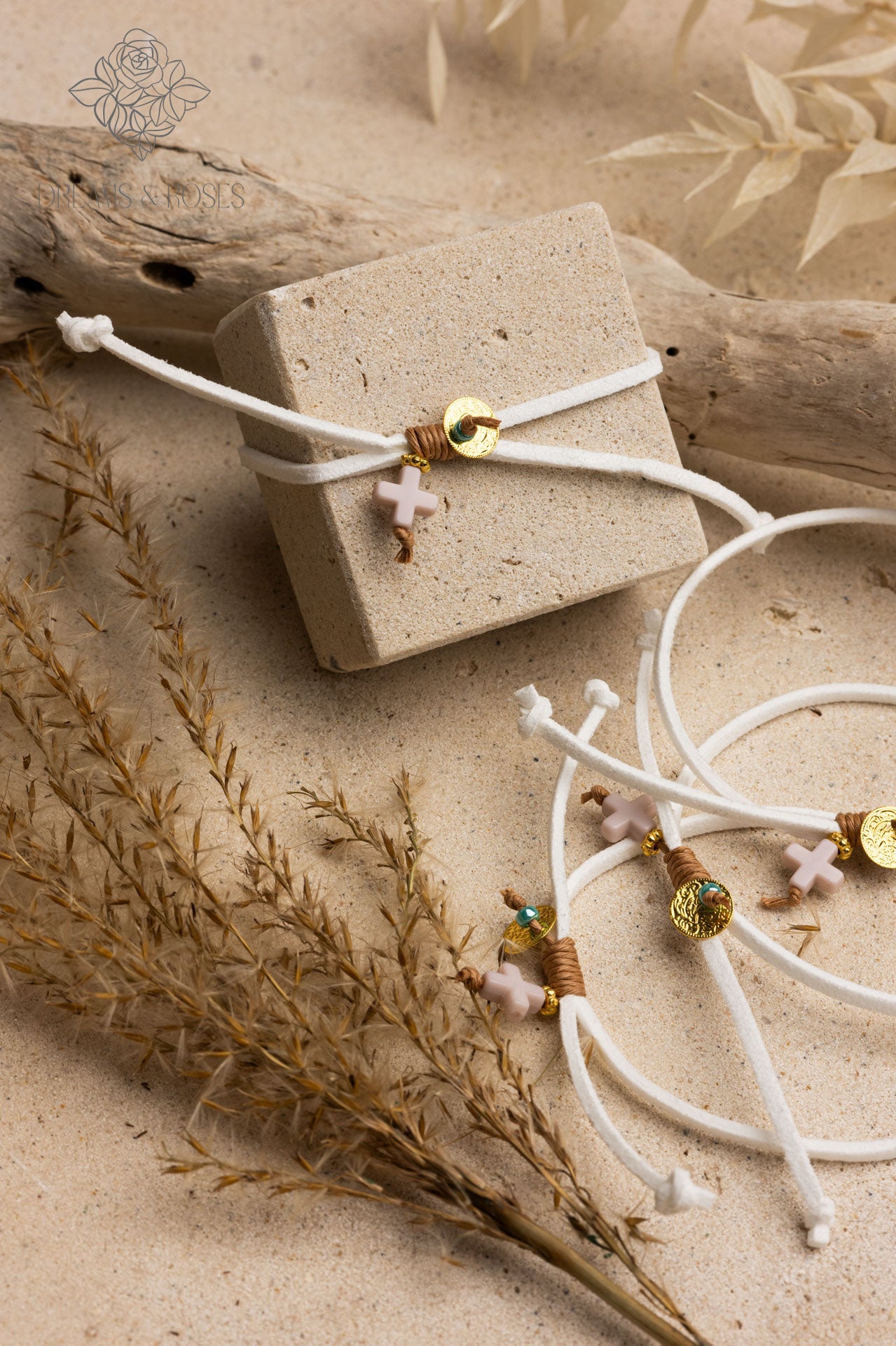- Υλικό: Το βραχιόλι αποτελείται από έναν ροζ σταυρό και ένα χαριτωμένο στοιχείο φλουρί, που προσδίδει μια διακριτική παιχνιδιάρικη πινελιά.