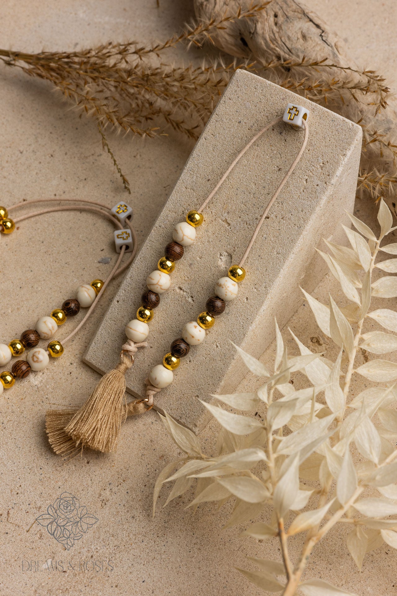 Ένα μοντέρνο και φινετσάτο δώρο για τους καλεσμένους της βάπτισης. Το μπεγλέρι διαθέτει ένα κυβικό στοιχείο σταυρό, που αποπνέει αίσθηση αιωνιότητας και πίστης, ενώ οι ξύλινες και χαολίτης χάντρες προσδίδουν μια φυσική και γηινή αίσθηση. Η σύνθεση αυτών των υλικών δημιουργεί ένα ισορροπημένο και εκλεπτυσμένο σχέδιο, ιδανικό για την βάπτιση ενός αγοριού. Το μαρτυρικό εκπροσωπεί την πίστη και την αγάπη, ενώ παράλληλα αποτελεί ένα μικρό κομμάτι φύσης με την παρουσία των ξύλινων και χαολίτη χαντρών. Αυτό το μαρτυρικό αποτελεί ένα όμορφο και συναισθηματικό ενθύμιο για τους καλεσμένους, που θα τους υπενθυμίζει τη σημαντική αυτή ημέρα