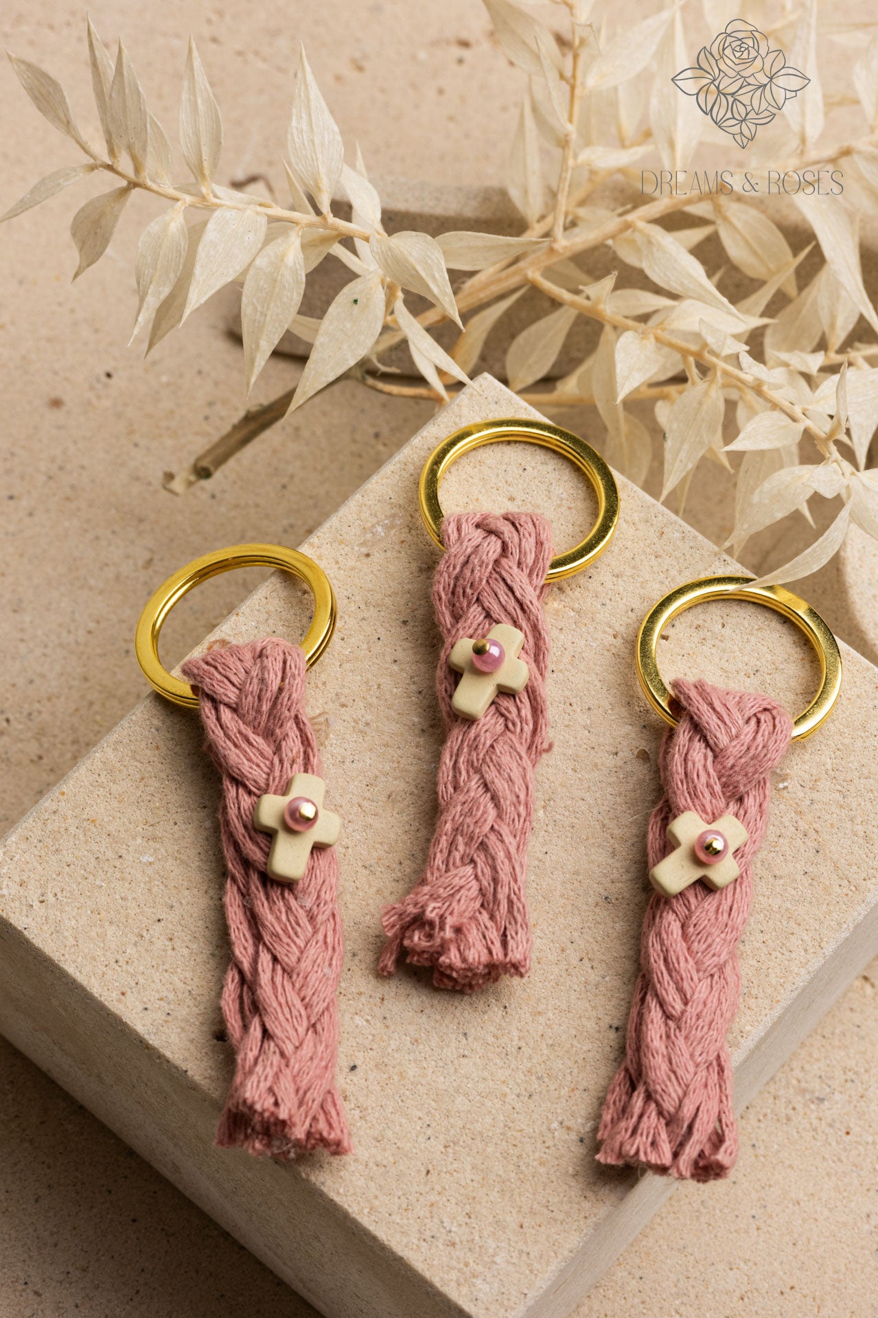 Μια όμορφη και κομψή επιλογή για τους καλεσμένους της βάπτισης. Το μπρελόκ διαθέτει έναν κεραμικό σταυρό με πέρλα και τρέσα κοτσίδα, προσφέροντας έναν μοναδικό συνδυασμό από κλασική γοητεία και μοντέρνα λεπτομέρεια. Ο κεραμικός σταυρός προσδίδει μια αίσθηση αυθεντικότητας και παράλληλα αντίθεσης με τον παραδοσιακό μεταλλικό σταυρό, ενώ η πέρλα προσθέτει λάμψη και κομψότητα. Η τρέσα κοτσίδα προσδίδει έναν αέρα διαχρονικής γοητείας και θηλυκότητας. Αυτό το μαρτυρικό αποτελεί μια εκλεπτυσμένη επιλογή για την βάπτιση του κοριτσιού, που θα ενθουσιάσει τους καλεσμένους και θα τους χαρίσει ένα μικρό αλλά αξέχαστο ενθύμιο από μια σημαντική ημέρα.