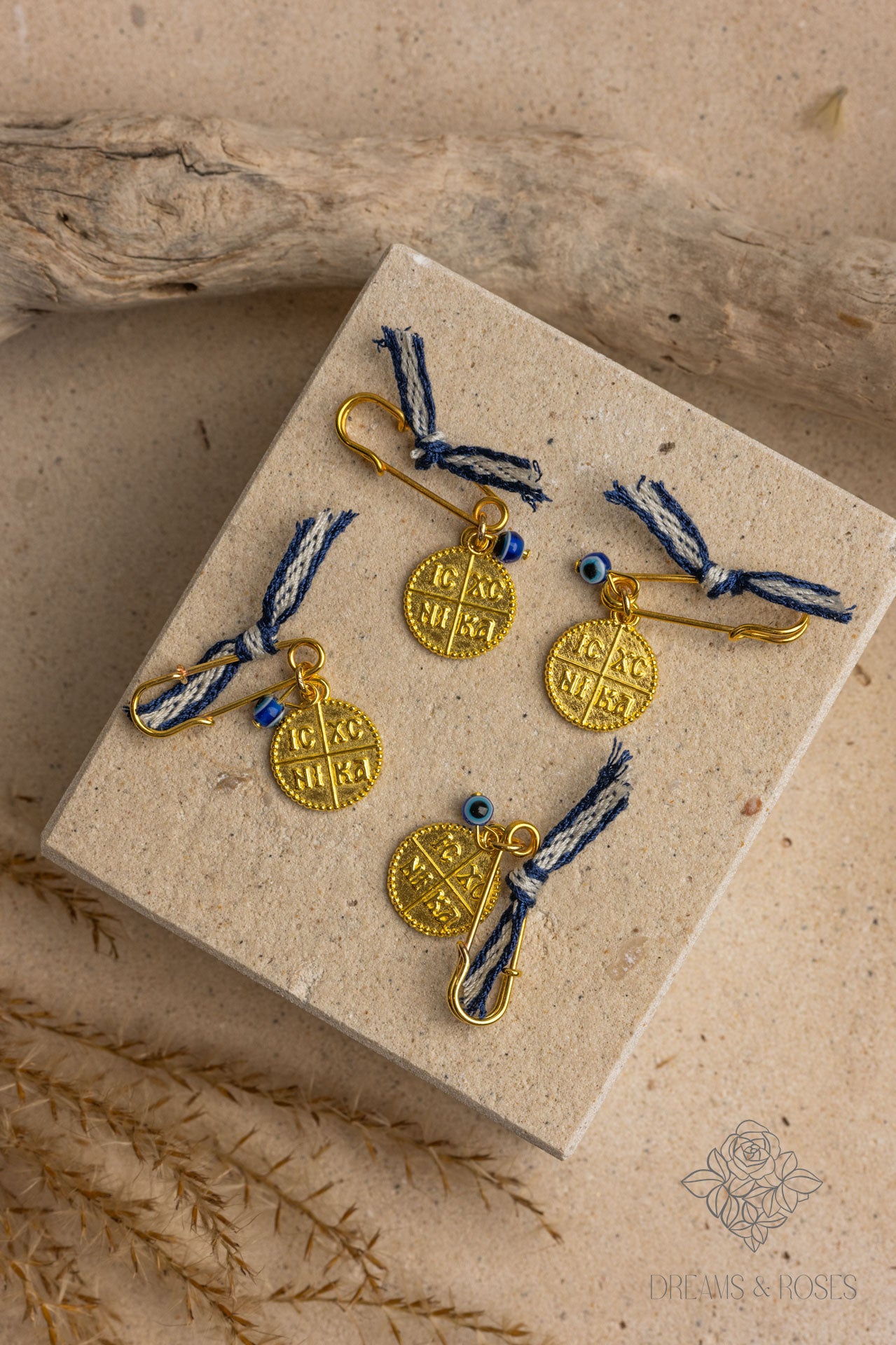 Το συγκεκριμένο μαρτυρικό βάπτισης αποτελείται από μια όμορφη χρυσή παραμάνα με έναν λαμπερό χρυσό μεταλλικό σταυρό, διακοσμημένο με μια χαριτωμένη φουντίτσα από λευκή και μπλε κλωστή. Επιπλέον, το βαπτιστικό συνοδέυται από ένα μικρό μπε ματάκι. Αποτελεί ένα εκλεπτυσμένο και συμβολικό δώρο που προσφέρεται στους καλεσμένους στο τέλος της τελετής, ως μια ευχή για ευτυχία και ευλογία στο παιδί που βαπτίζεται.