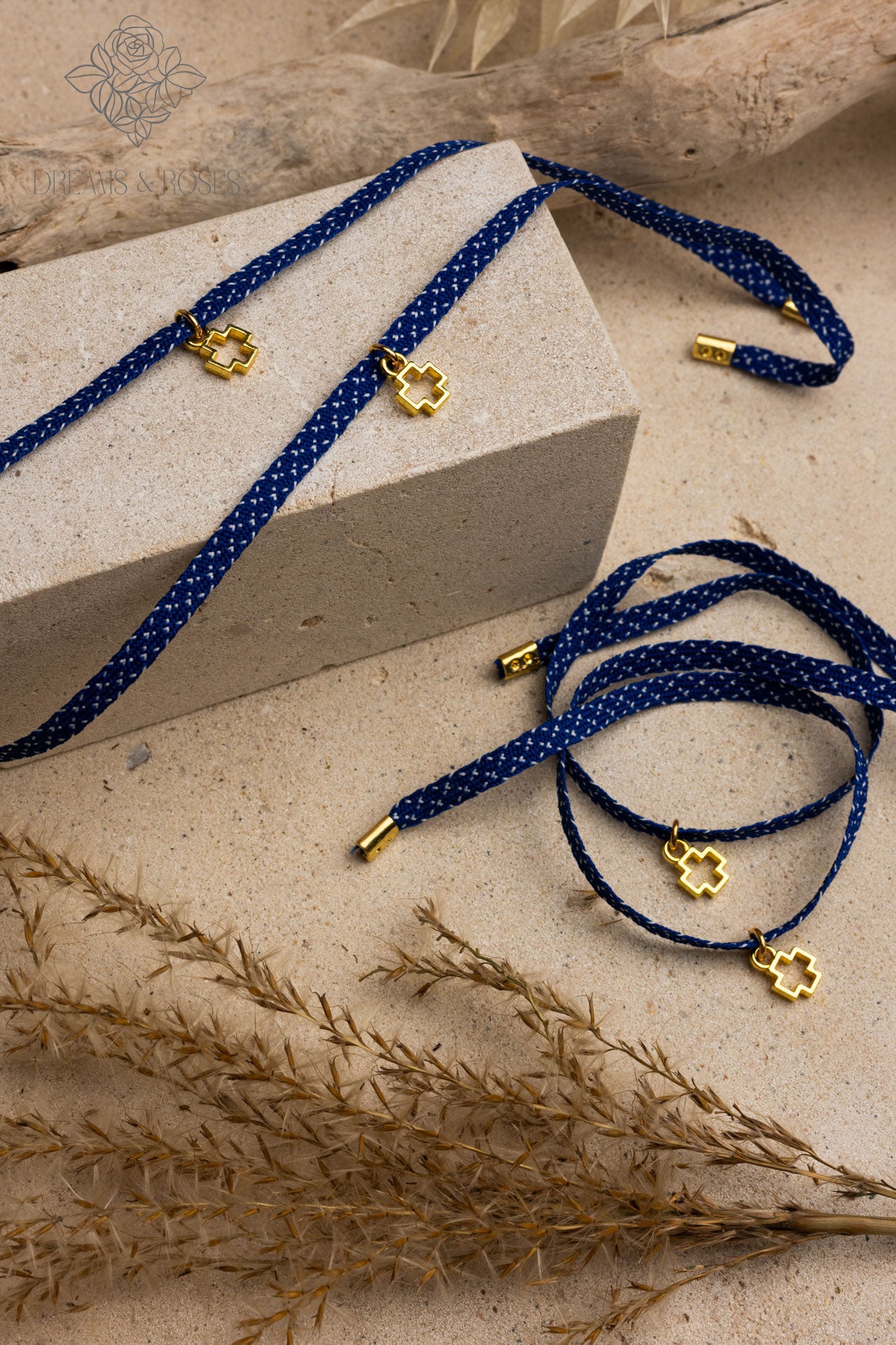 Μια όμορφη και απλή επιλογή για τους καλεσμένους της βάπτισης. Αποτελείται από έναν μεταλλικό σταυρό που είναι τόσο συμβολικός όσο και διαχρονικός, συνδυασμένος με ένα βαμβακερό κορδόνι που προσδίδει μια φυσική και απαλή αίσθηση. Η απλότητα του σχεδίου και των υλικών το καθιστούν κατάλληλο για όλες τις ηλικίες και την αρεσκεία. Είναι ένα διακριτικό και εκλεπτυσμένο δώρο που μπορεί να φορεθεί καθημερινά, θυμίζοντας στους αποδέκτες τη σημαντική αυτή ημέρα και τις ευλογίες που συνοδεύουν τη βάπτιση.